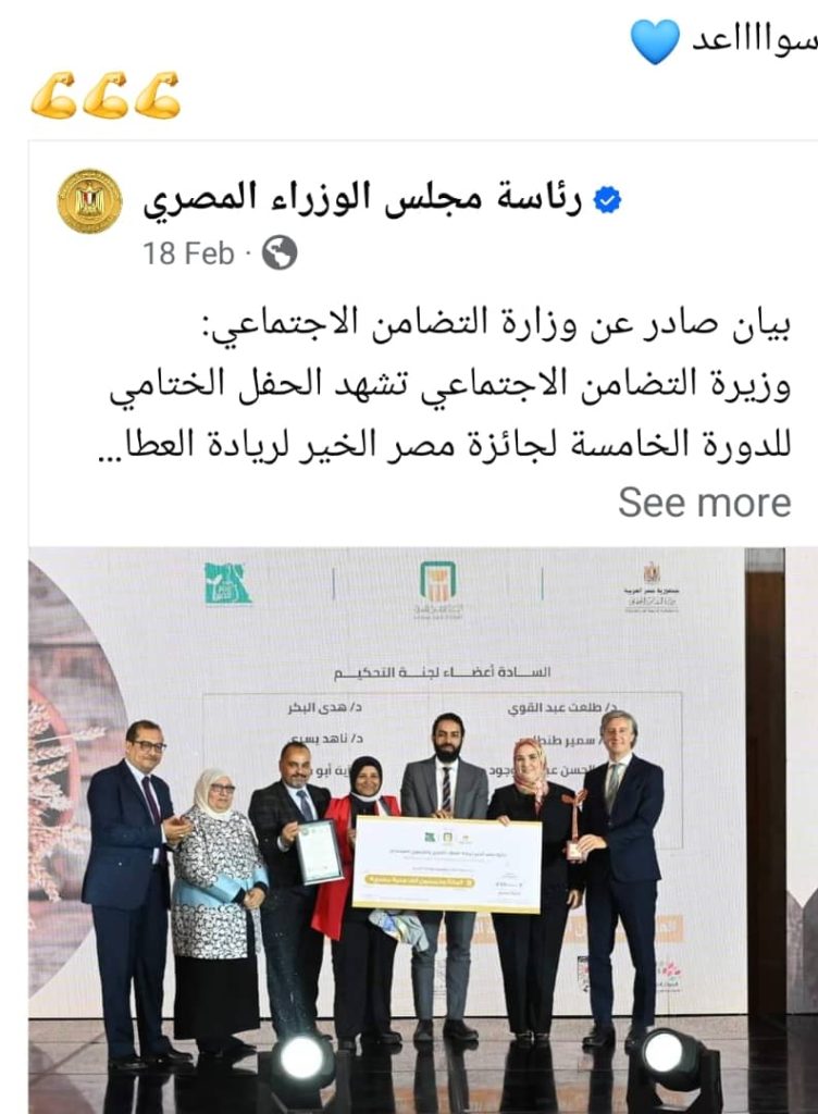 وأكدت وزيرة التضامن الاجتماعي أن الدورة الخامسة لجائزة مصر الخير لريادة العطاء الخيري والتنموي المستدام تسعي لدعم المؤسسات الأهلية في ضوء أهداف التنمية المستدامة السابعة عشر، حيث تمنح من خلالها الجائزة للجمعيات والمؤسسات والمشروعات التنموية والمبادرات الشبابية المساهمة في إحداث أثر في تنمية المجتمعات المحلية ، مقدمة التحية للجنة التحكيم التي تضم مجموعة من الخبراء في مجال التنمية والمؤثرين عن منظمات محلية وإقليمية.